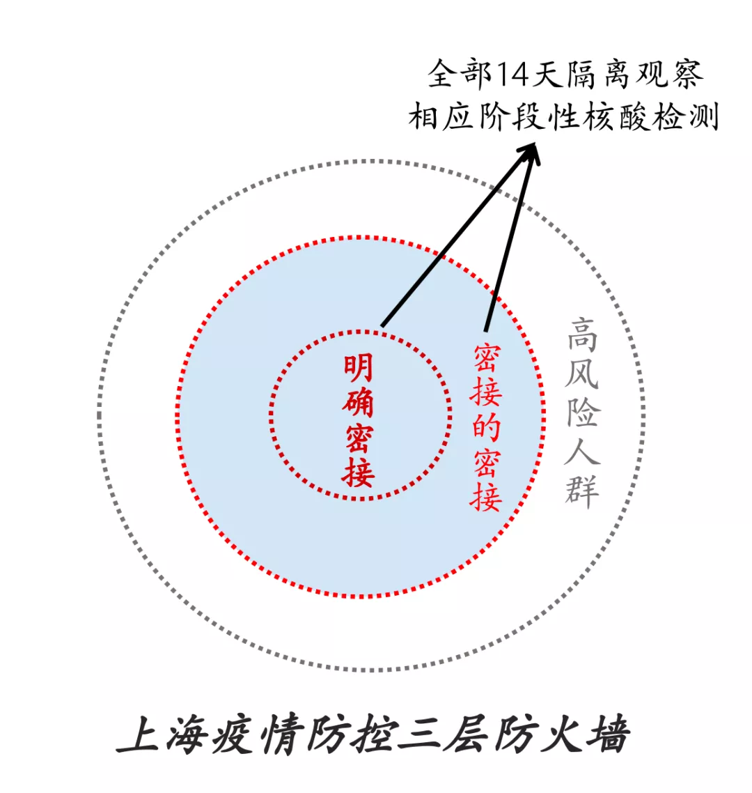 這是上海建立起來的閉環管控,三層的防火牆在第一時間構建好,即便之後有一個密接變成確診病例,也不用擔心