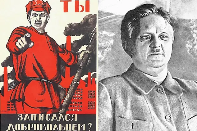 蘇俄內戰紅軍指揮官(上左至右)布瓊尼、斯大林、圖哈切夫斯基、肖爾斯;(下左至右)恰巴耶夫、伏羅希洛夫、伏龍芝、托洛茨基)