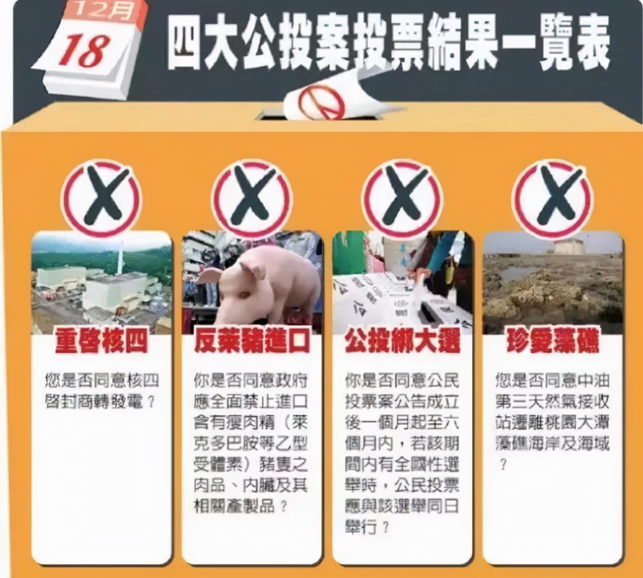台灣四大“公投”結果全部出爐,“四大皆空”。