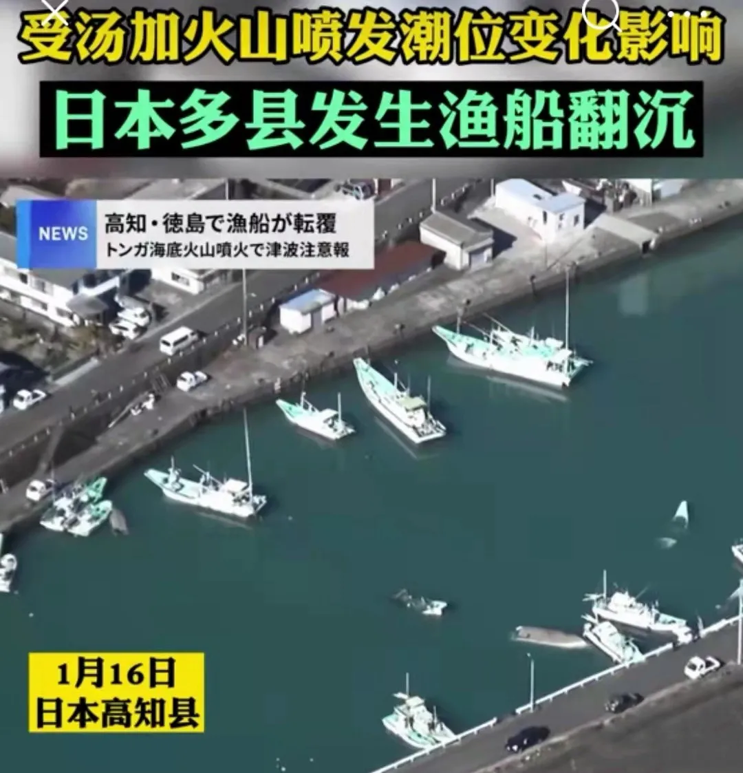 日本與湯加都是島國,而且同處環太平洋地震火山帶。湯加火山引發了潮位變化,目前日本已經有多艘漁船傾覆。僅高知縣就有19艘漁船“翻船”。