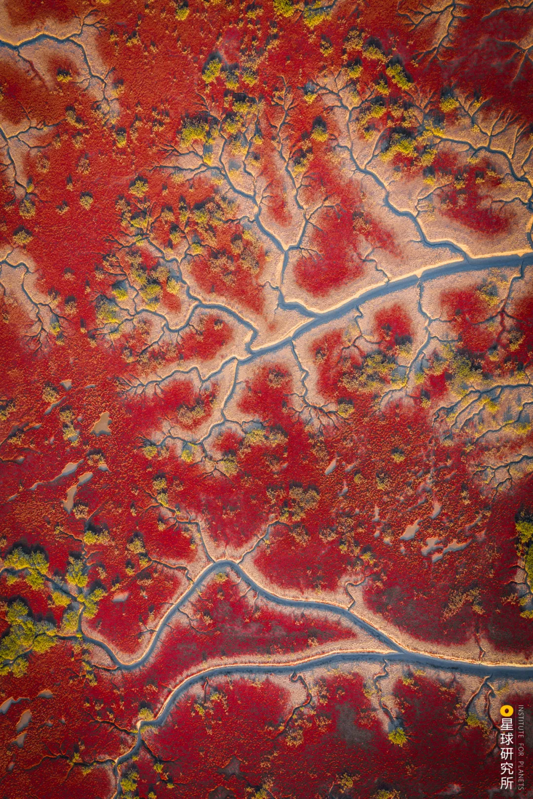 (遼寧遼河口國家級自然保護區,以顏色豔麗的紅海灘聞名於世,攝影師@王禹)