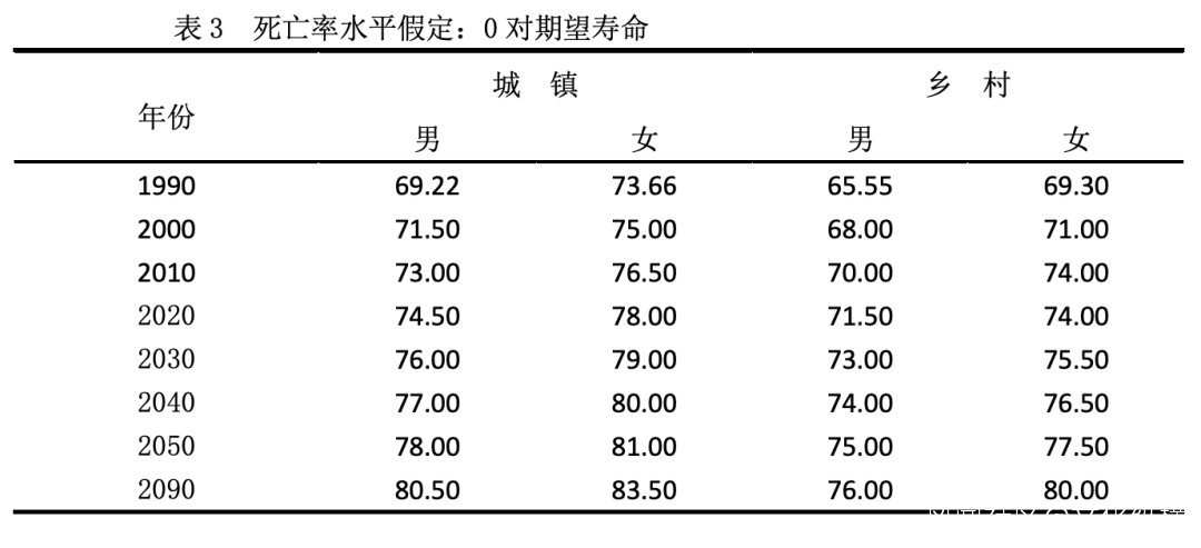 方案三:現行生育政策不變方案,即低生育率方案。這一方案的生育政策內容是繼續一直堅持現行生育政策,即城鎮一對夫婦准許生一孩,大多數農村開放女兒户即平均1.6孩。從目前現行生育政策執行的情況看,農村絕大多數地區離現行生育政策還有一定的差距。因此,本方案假定,繼續加強實施現行生育政策的力度,使農村現在高出更替水平的總和生育率到2000年降至2.00,到2010年實施婦女終身生率1.6。城鎮到2000年降至1.20,基本實現一胎化,並一直保持不變。