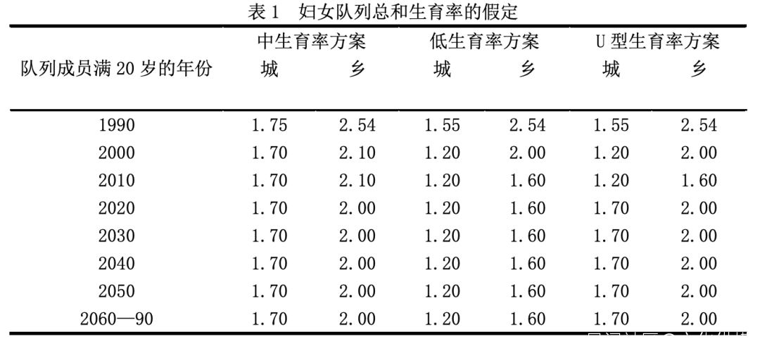 不論對解決我國人口問題有何分歧,有一點認識應該説是一致的,由於龐大的人口基數,中國人口數量不可能繼續無止境地增長下去,人口自身再生產在未來至多隻是一個簡單自身再生產。因此,中國計劃生育政策首先是積極主張控制人口數量的政策。鑑於這種基本的認識,本文不假定存在着鼓勵人口繼續增長的生育政策,即不假設存在着總和生育率高於更替水平的預測方案。根據現行和未來可能出現的生育政策,本文的政策模擬預測只考慮中死亡率水平條件下的四種生育率假定方案,但無論是哪一種選擇,它們的共同之處都是控制人口數量增長的方案。