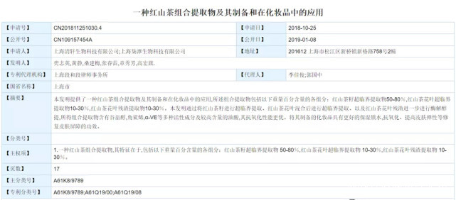 此類植物原料的特點在於,具備排他性的並不是原料本身,而是圍繞原料從提取方式、生產製造以及作用機理等一系列的技術壁壘。正如林清軒所提出的“紅山茶花”的技術優勢,在《一種紅山茶組合提取物及其製備和在化妝品中的應用》(專利號:CN201811251030.4)中,這樣提到: