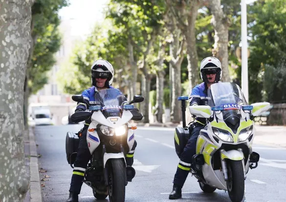 兩位騎摩托車的警察疾速趕來,在第一輛麪包車前戛然停住。他們全副武裝,頭盔上裝着對講機,話筒衝着嘴。兩人分頭迅速清點車隊車輛數量,並通過話筒商量他倆的分工。兩位警察使勁一蹬腳踏,摩托車向前衝去。只見年紀大一點的警察(我們稱他老警察)在前面鑽到兩道車流中間,左手停車姿勢,讓左側車輛停下,再揮動右手讓右側車輛往邊上讓一讓,不一會兒車流動了起來,我們的車隊插了進去。