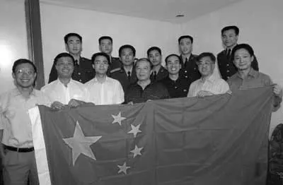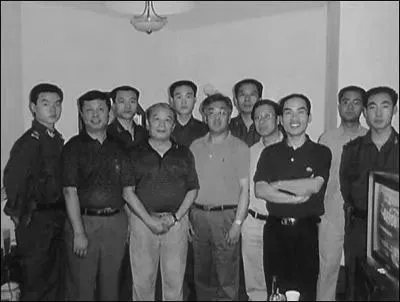2004年7月9日,孫必幹大使(前排中)在中國駐伊拉克大使館與工作人員及警衞人員合影。