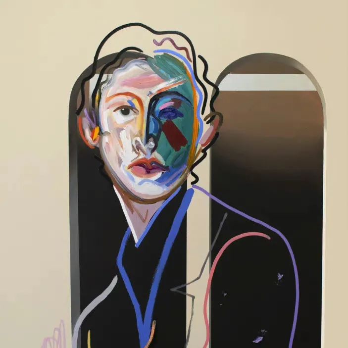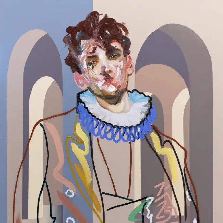 90後藝術家Loribelle Spirovski用油漆等材料勾勒出簡單的線條,讓肖像畫和狂熱而又跳動的線條融合在一起,有着鮮明的色彩和矛盾的節奏,充滿着緊張的情緒。