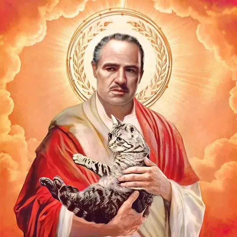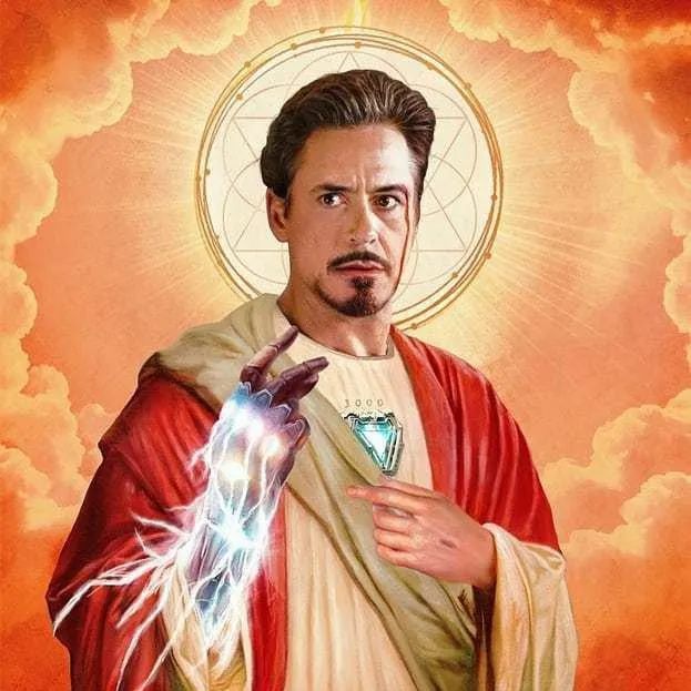 被神化的影視人物手持道具擺出最經典的姿勢,睥視眾生,憐憫、傲慢與悲情悉數展現。
