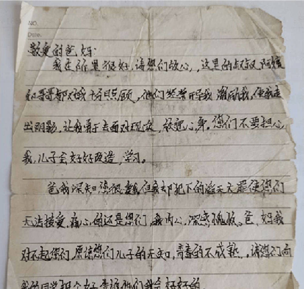 陳泗翰在獄中給父母的信