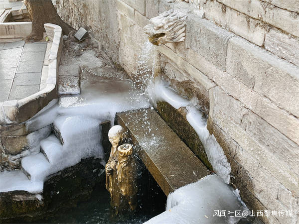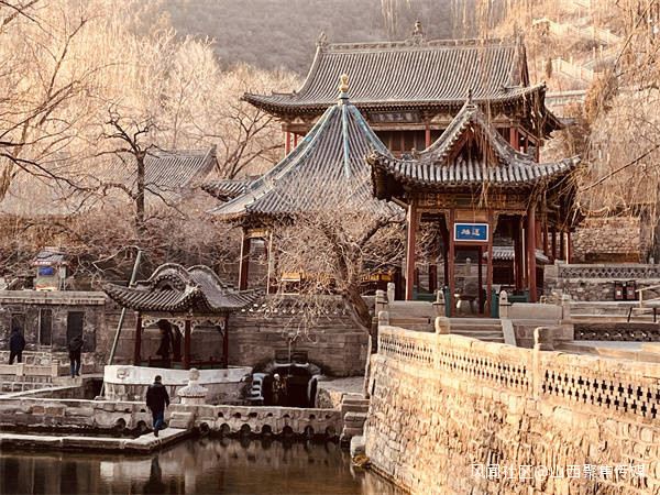 難老泉,“晉祠三絕”之一,是晉水的主要源頭。泉水出自地平線下約 5米的斷層巖,水温恆温17℃左右,即使是在隆冬之季,水中特有的生長草 仍然碧綠如茵。