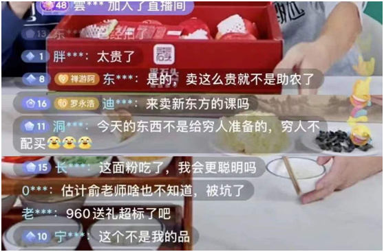 而原本想要支持俞敏洪東山再起的網友,紛紛倒戈,刷起了買不起、太貴了、吃不起的負面評論。