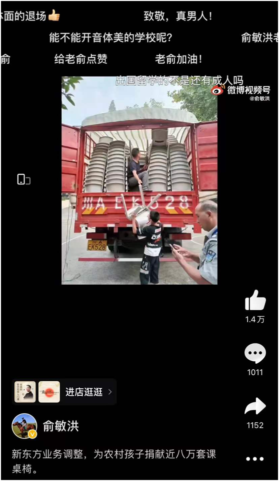 他開始做一些公益活動,比如,給山區的孩子捐了8萬套嶄新課桌,博得了不少網友的讚許:“良心企業家,真男人,真體面人。”