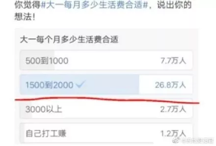 而微博也曾有過相關調查,1500-2000元/月,是大部分人的選擇。
