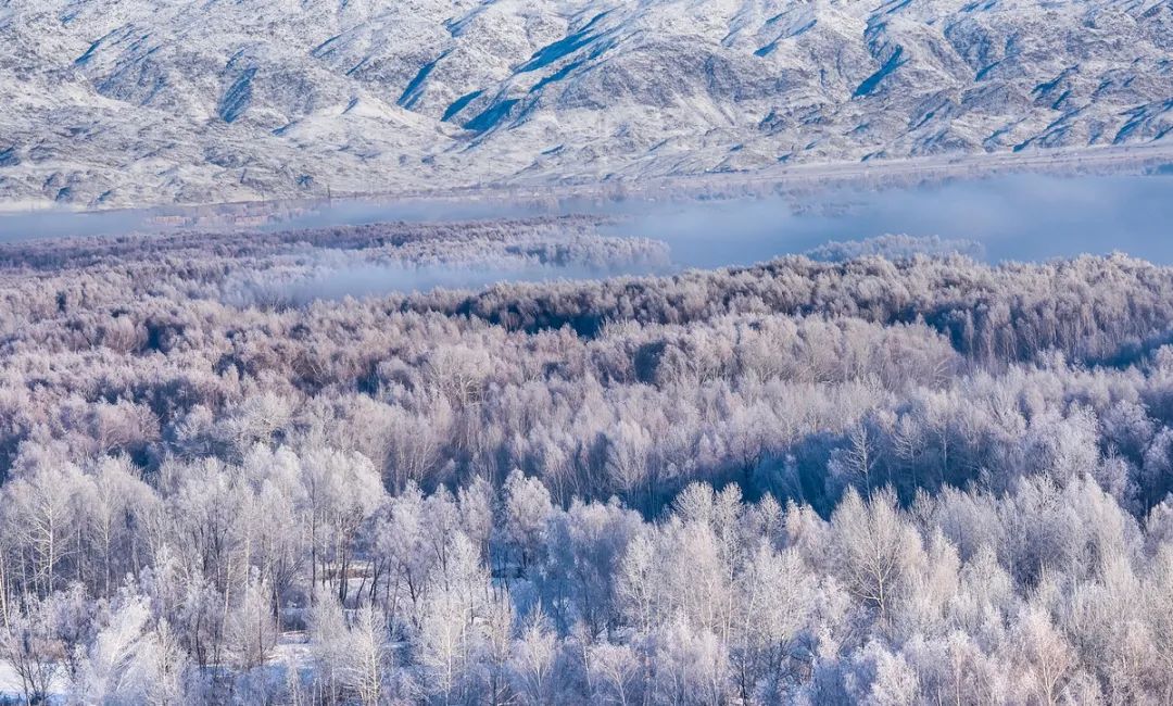 阿勒泰的緯度與東北的漠河相近,冬季漫長而寒冷,最冷月為1月,平均氣温-16°c。阿勒泰極端的氣候也賦予了阿勒泰極致的冬季美。冬日暖陽中的可可托海、幽靜美麗的白哈巴村、銀妝素裹的烏倫古湖,還有那靈動的雪蘑菇和霧凇……