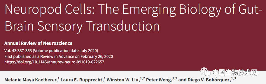 兩年前,Bohórquez的團隊在**《Annual Review of Neuroscience》上發表了一篇綜述文章,描述了這種名為neuropod**的特殊細胞。它是一類能形成神經突觸的腸感覺上皮細胞。