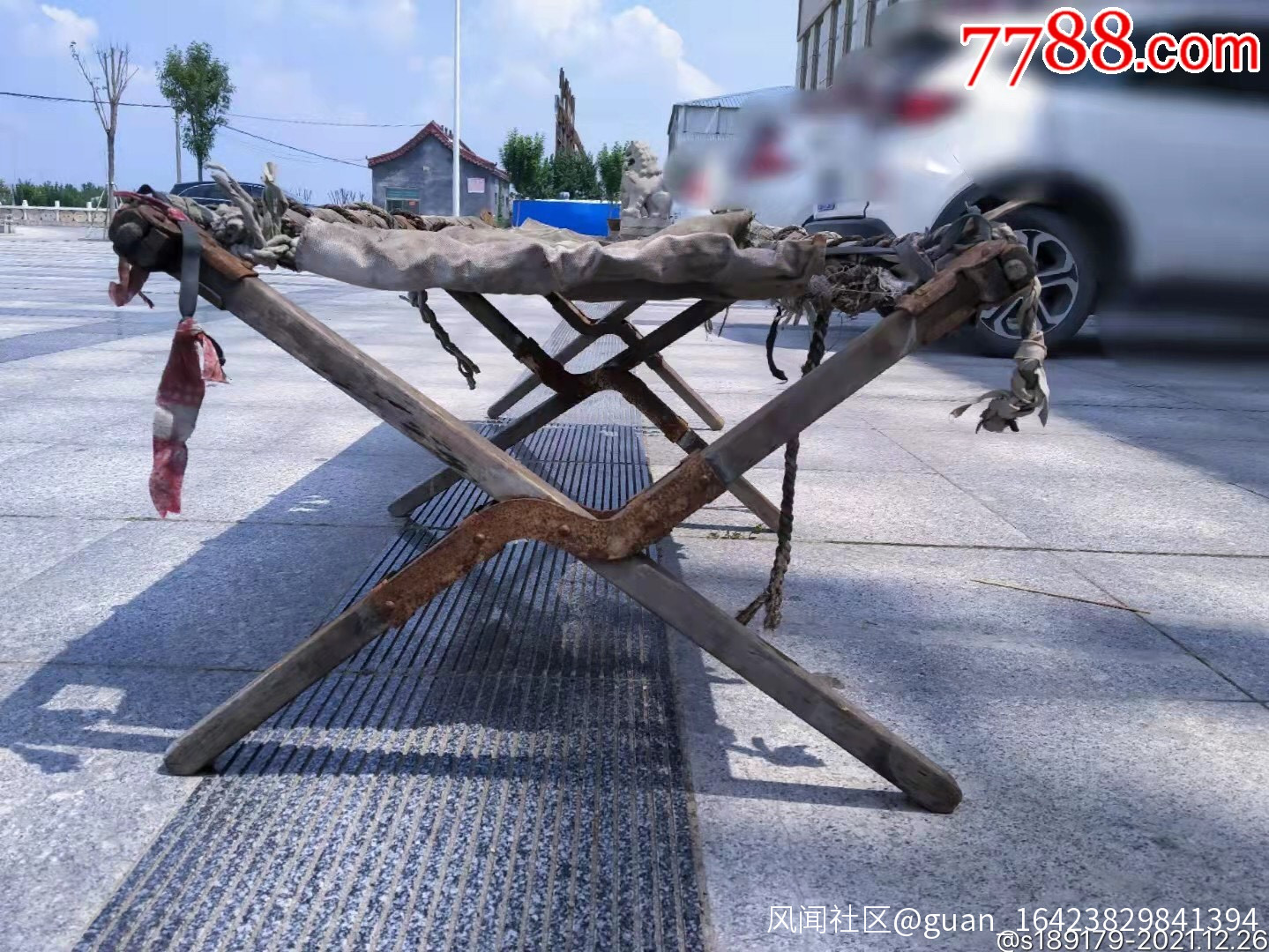 可摺疊起來的帆布行軍牀的牀架是金屬的。