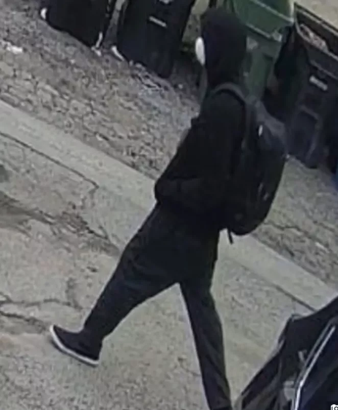 洛杉磯警察局在一份聲明中説:‘嫌疑人被描述為一名男性黑人,年齡不詳,高個子,瘦,穿着深色連帽衫,戴着太陽鏡,戴着白色N-95口罩,穿着深色緊身牛仔褲,穿着深色鞋子,揹着一個深色揹包。
