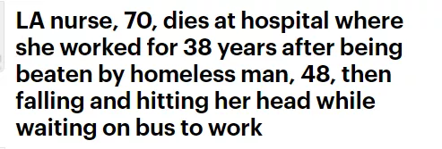 1月13日,希爾斯正在聯合車站East Cesar Chavez路和North Vignes街的公車站等車,卻突然莫名遭到一名黑人男子攻擊。當警方抵達現場時,滿地都是鮮血,她隨後被送往了洛杉磯-南加大醫療中心(L.A. County-USC Medical Center),現年70歲的希爾斯是一名老護士。