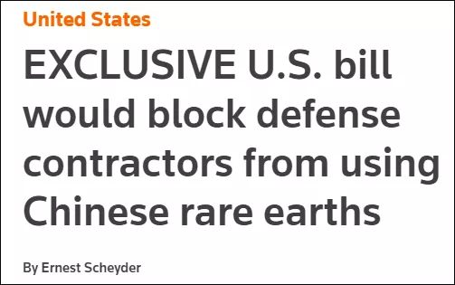這份法案要求:“禁止五角大樓承包商購買中國稀土,支持美國稀土產業的復甦。”