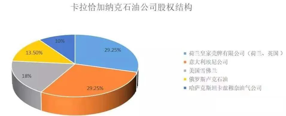 哈薩克斯坦最重要的石油領域,積極引入西方資本,其中以美資為主。哈最大的石油公司騰吉士·雪佛蘭公司,美資佔75%,哈本國只為20%,第二大卡拉恰加納克公司裏,美、荷、意資本佔了76.5%,俄資為13.5,哈本國資產更是低到只有10%。