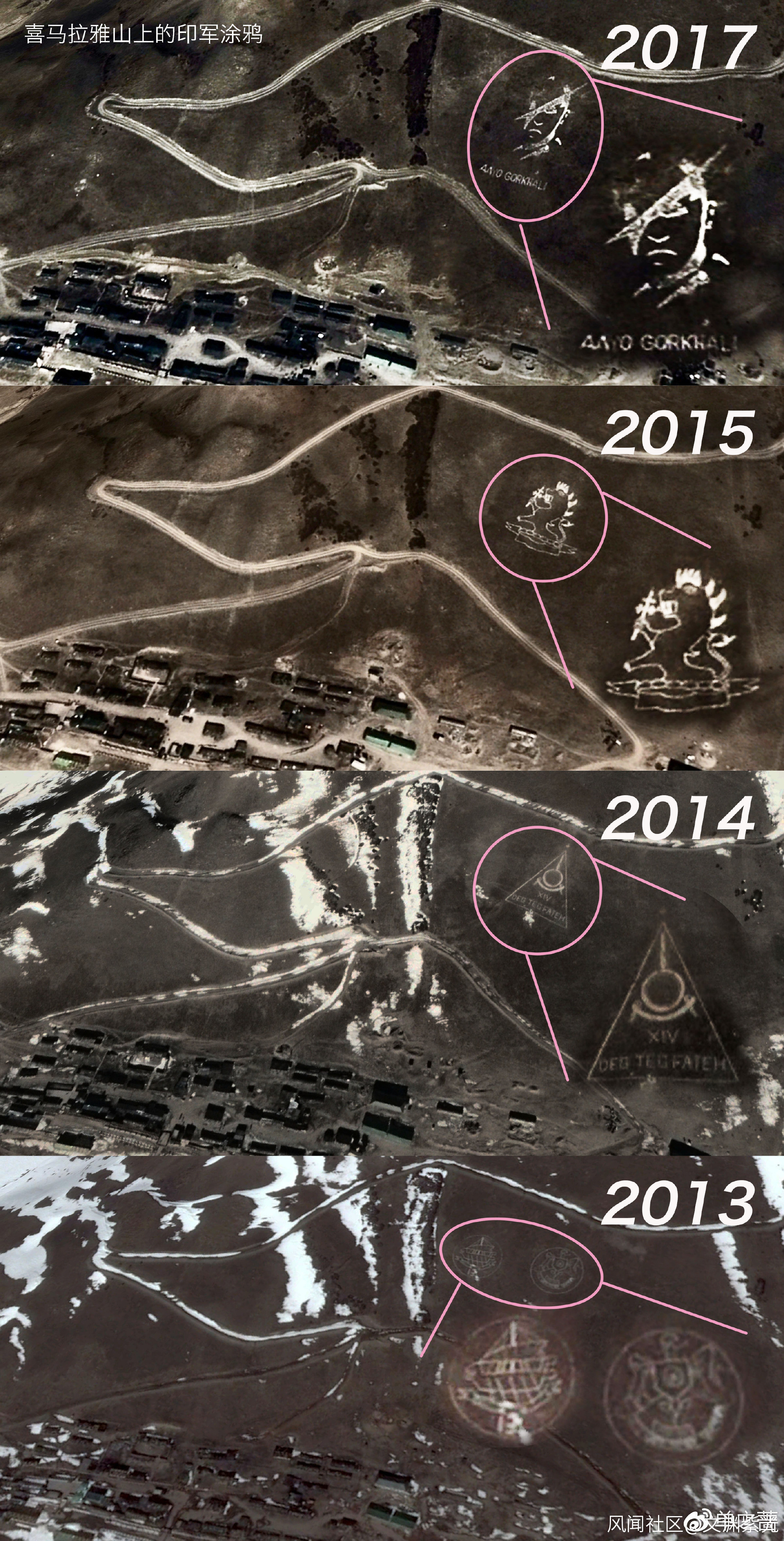 距崗巴縣20公里的山上,印軍畫上了塗鴉。