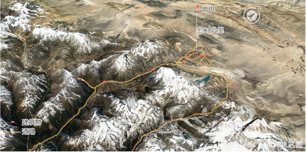 ▲印度軍隊從錫金邦北部,沿着喜馬拉雅山脈間的溝谷,將道路和軍事據點修建到了青藏高原之上,距離我國日喀則市崗巴縣僅20多公里。通過遙感影像可以觀察到,印度軍隊在這條線路上有多個頗具規模的據點,隱蔽在高聳的山谷之間。