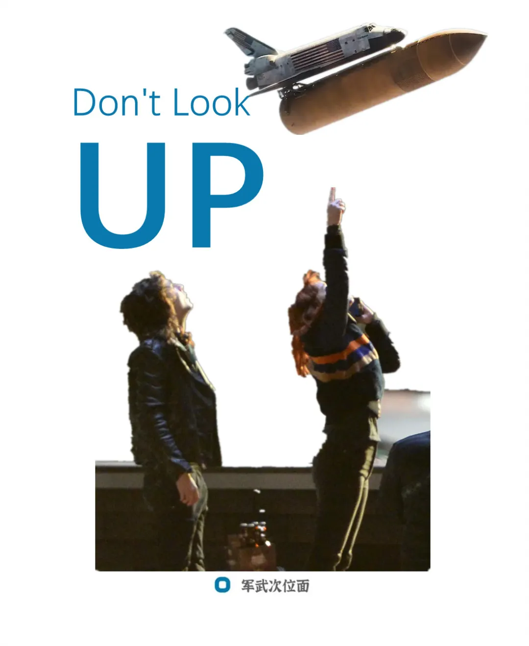 隨着“毀滅彗星”的逐步接近,它已經是一顆肉眼可見的星星了,在事情的真相已經無法被掩蓋的情況下,更加荒誕的一幕出現了,不是彗星真的來了嘛?那我就直接提出一個對一切天災“免疫”的行動口號:“不要抬頭”,只要不抬頭,看不見星星,那麼自然就無需擔心它砸下來的危險了……