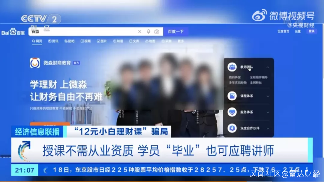 央視曝微淼財商課老師授課無需從業資質,學員聽從選股建議動輒虧千元_風聞