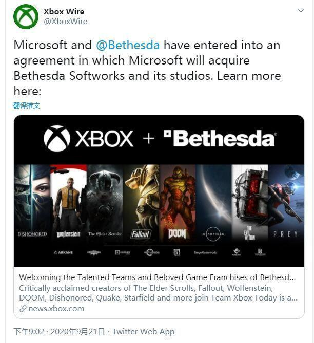 微軟以75億美元與ZeniMax Media達成收購協議,收購ZeniMax及其旗下的工作室。