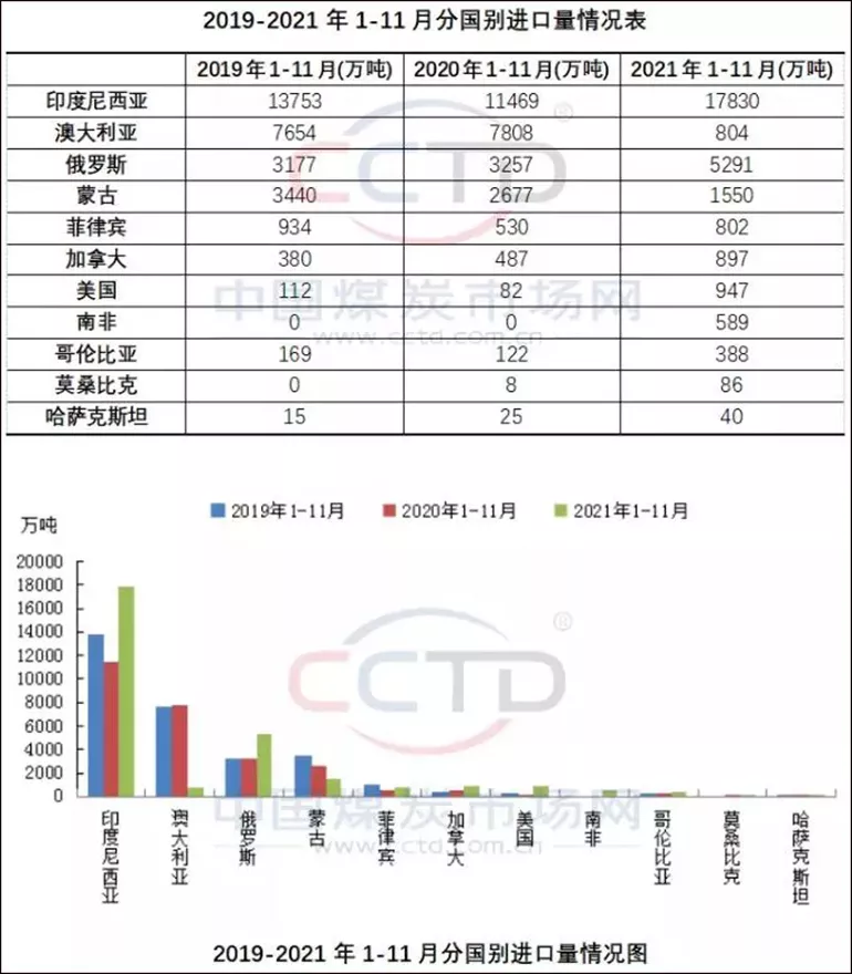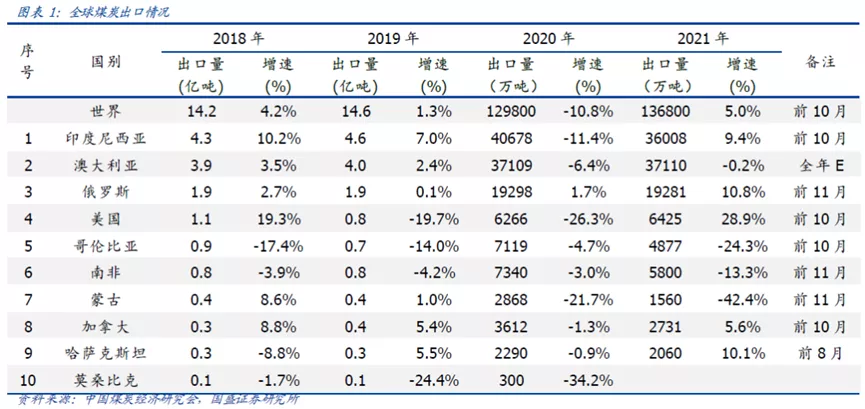 前面已經説過,印尼是全球煤炭最大的出口國,出口量約佔產量的75%,在全球煤炭市場特別是亞洲市場扮演着重要角色,該國主要用於電廠的動力煤出口量連續數年保持首位,2021年1-10月共出口3.6億噸煤炭,同比增長9.34%。