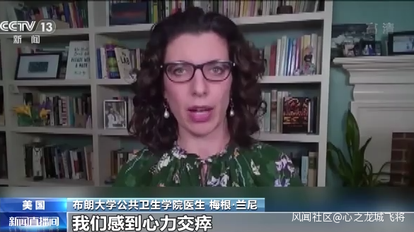 布朗大學公共衞生學院醫生 梅根·蘭尼:讓我來給你講講我值班時的情景,在急診室有10名護士倒下了,然而有時候卻有數十名病人在等待就醫,等待時間長達好幾個小時。病人們一個接一個地來,經歷了這樣的病人潮後,我們感到心力交瘁。