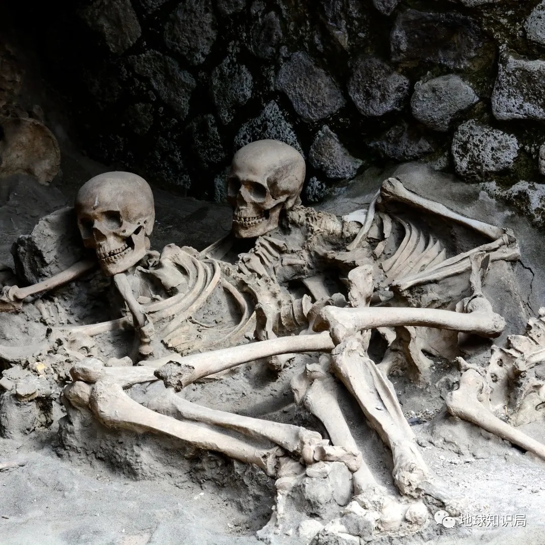 赫庫蘭尼姆城址的人們直接遭受岩漿的灼蝕,只留下了森森白骨堆
