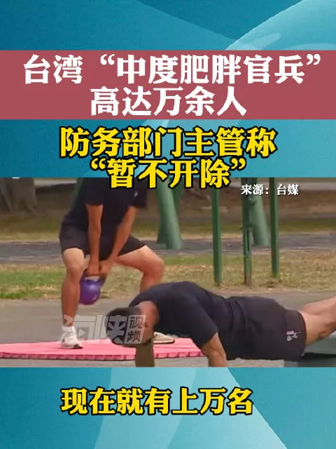 據台灣《聯合報》2022年1月7日報道,台灣“國防部”軍醫局最新統計台軍“中度肥胖”的官兵總數高達萬餘人,肥胖人數之多引起“參謀總長”陳寶餘“震怒”,主張研擬要將這些人列入開除對象,不過該主張被台“國防部長”邱國正制止,認為要從長計議,暫不實施,但也認為台軍必須正視“胖官兵”問題。