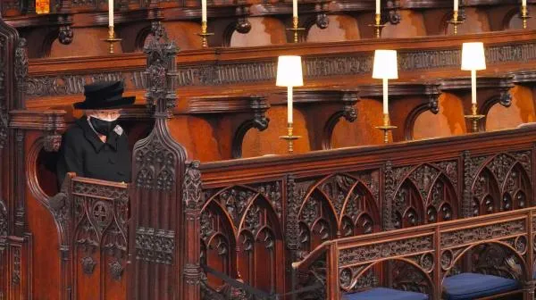 菲利普親王葬禮上,英國女王獨自一人坐在教堂一角