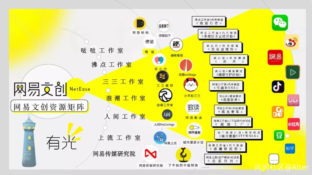對應到網易傳媒的佈局上,一場有序的戰略革新在同步進行中。比如2020年7月正式發佈了新內容品牌“網易文創”,構建了網易噠噠、浪潮工作室、談心社、小羊駝三三、槽值、硬核看板、人間、網易數讀等20多個頭部內容組成的IP矩陣,憑藉優質內容在行業內持續出圈;再比如網易新聞在資訊側的內容創新,打造了網易未來大會、未來公開課、“網易新聞知識公路”等高曝光量的活動平台和創新內容。