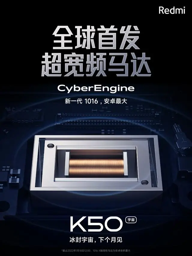 觸覺反饋方案提供商瑞聲科技發佈超寬頻X軸線性馬達CyberEngine。據介紹,CyberEngine有效頻寬50Hz~500Hz,諧振頻率低至130Hz,功耗低至0.12W,將首發搭載在春節後發佈的Redmi K50系列上。