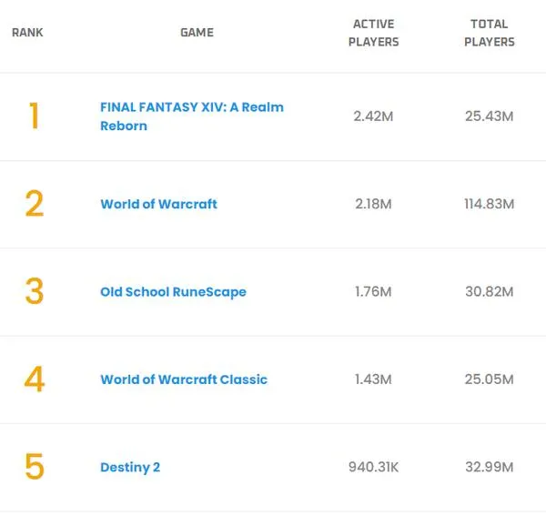 同為MOBA類型的《風暴英雄》出現次年,拳頭遊戲宣佈《英雄聯盟》全球玩家總數突破1億,而“風暴要火”這個梗比遊戲本身火得多。今年5月網站MMO-Population發佈的一份排行榜裏,《最終幻想14》的活躍玩家首次超越了《魔獸世界》。