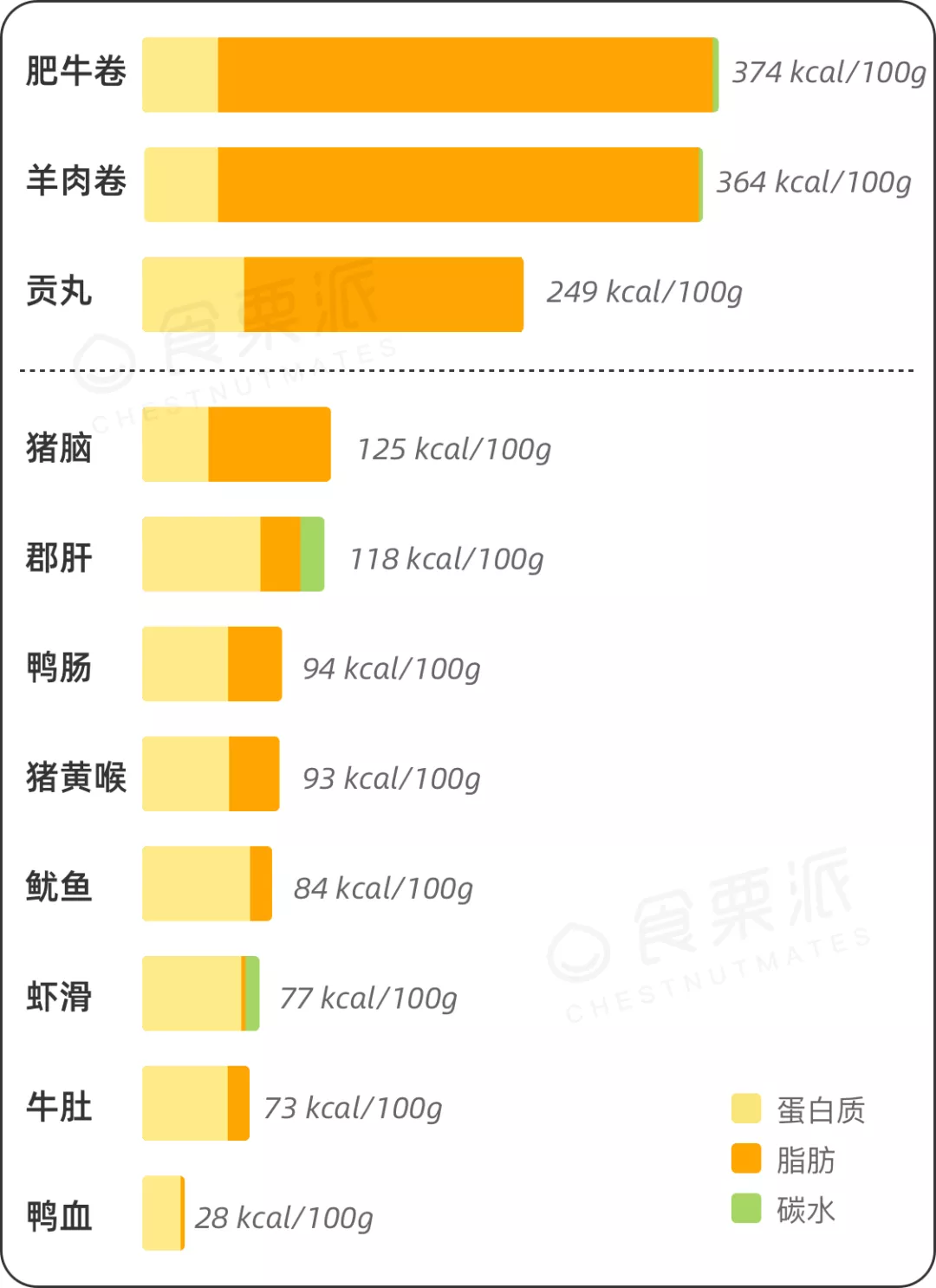 火鍋常見的內臟下水,大多也是低脂高蛋白食材,熱量比羊肉卷、貢丸這些肉類都要低。