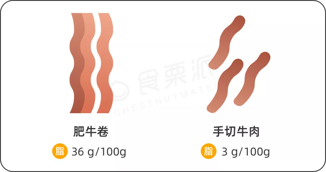 肥牛卷、肥羊捲上面,白花花的可都是肉眼可見的脂肪啊,手切牛羊肉會瘦很多。