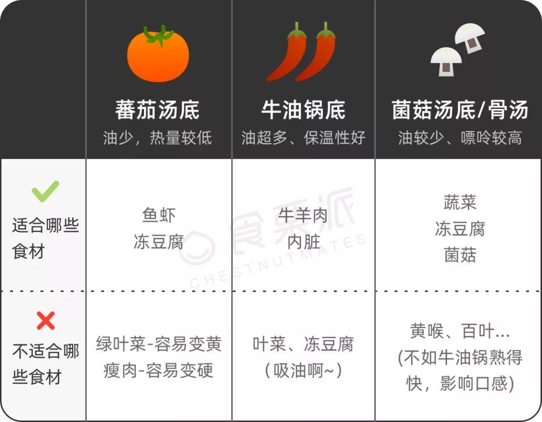 當然,更推薦選蕃茄、菌菇等清淡的鍋底,辣味靠蘸料來實現。
