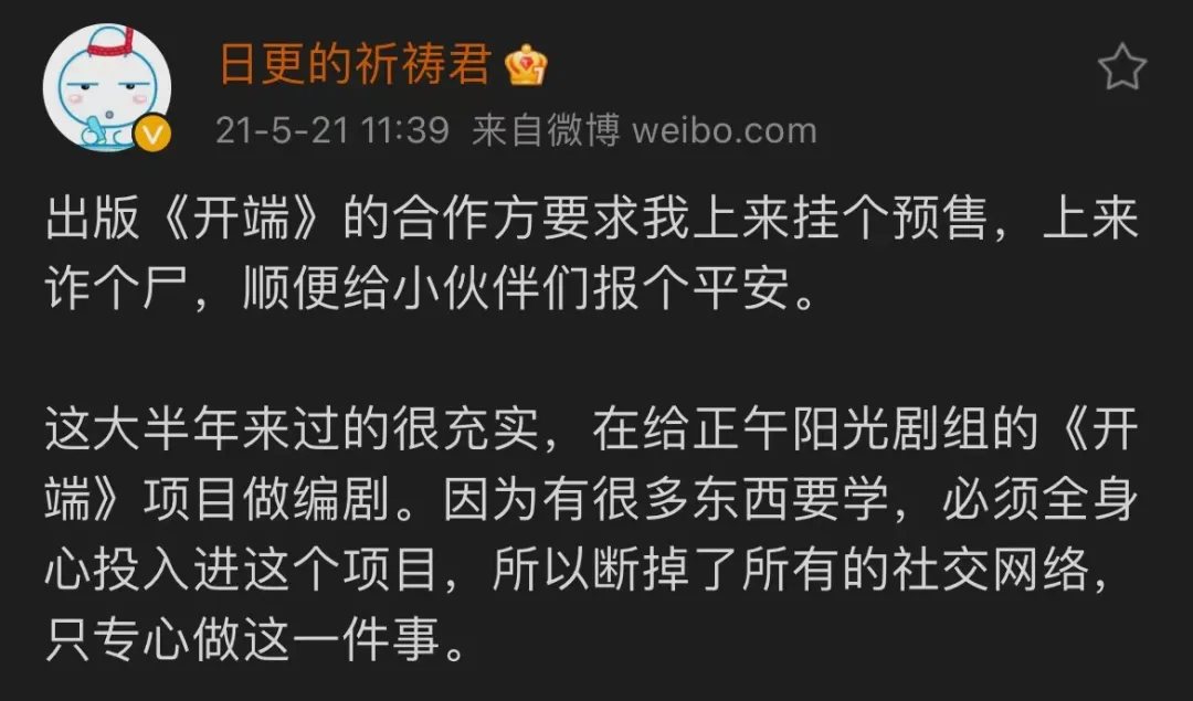 還有一些細節也可以體現出正午陽光對於劇本的重視。祈禱君對他的讀者直言:“正午陽光應該是每個編劇最嚮往的那種影視公司。”稱項目組手把手地教他如何進行影視編劇,把他安排在五星級酒店裏面寫劇本、而團隊自己則在小賓館裏面工作,以及編劇費用沒有絲毫拖欠——即便這在編劇同行們看來“是不正常的”。尊重是對等的,祈禱君在劇本創作期間也全力配合,用他的話説便是“斷掉了所有的社交網絡,只專心做這一件事”。