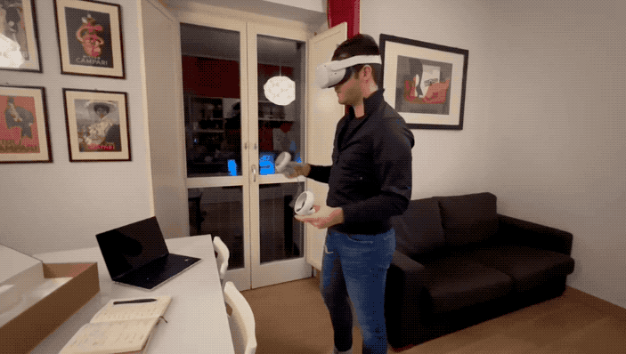 瞧,一位外國小哥頭戴VR,手持設備,就開始了一通“謎之操作”: