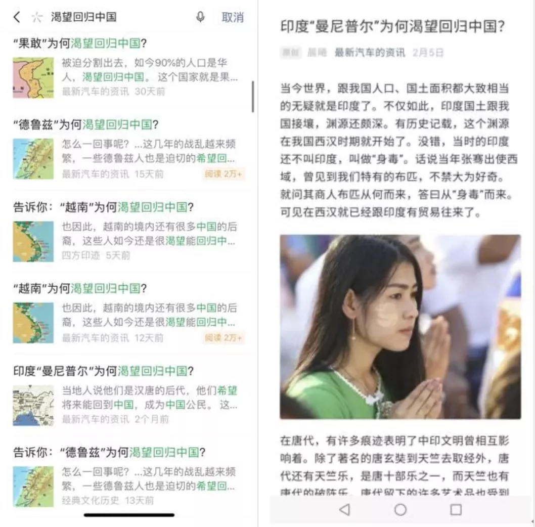 此前,網上曾出現過一批以“XX為什麼渴望迴歸中國”為題的“標題黨”文章,這類文章為了收割流量編造愛國謊言,宣揚不健康的愛國情緒,看似正能量實則惡化了網絡信息傳播環境。