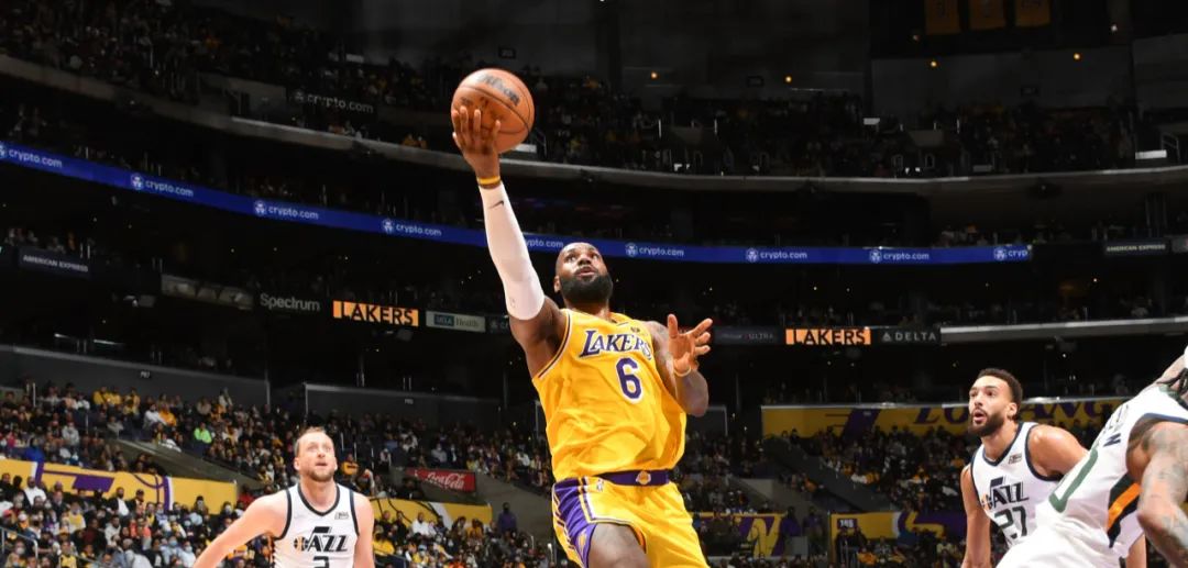 湖人第二次得手,詹姆斯在戈貝爾身後做背掩護,把戈貝爾剝離出護筐區,讓斯坦利·約翰遜有了衝筐的機會,爵士其他球員沒有阻攔;