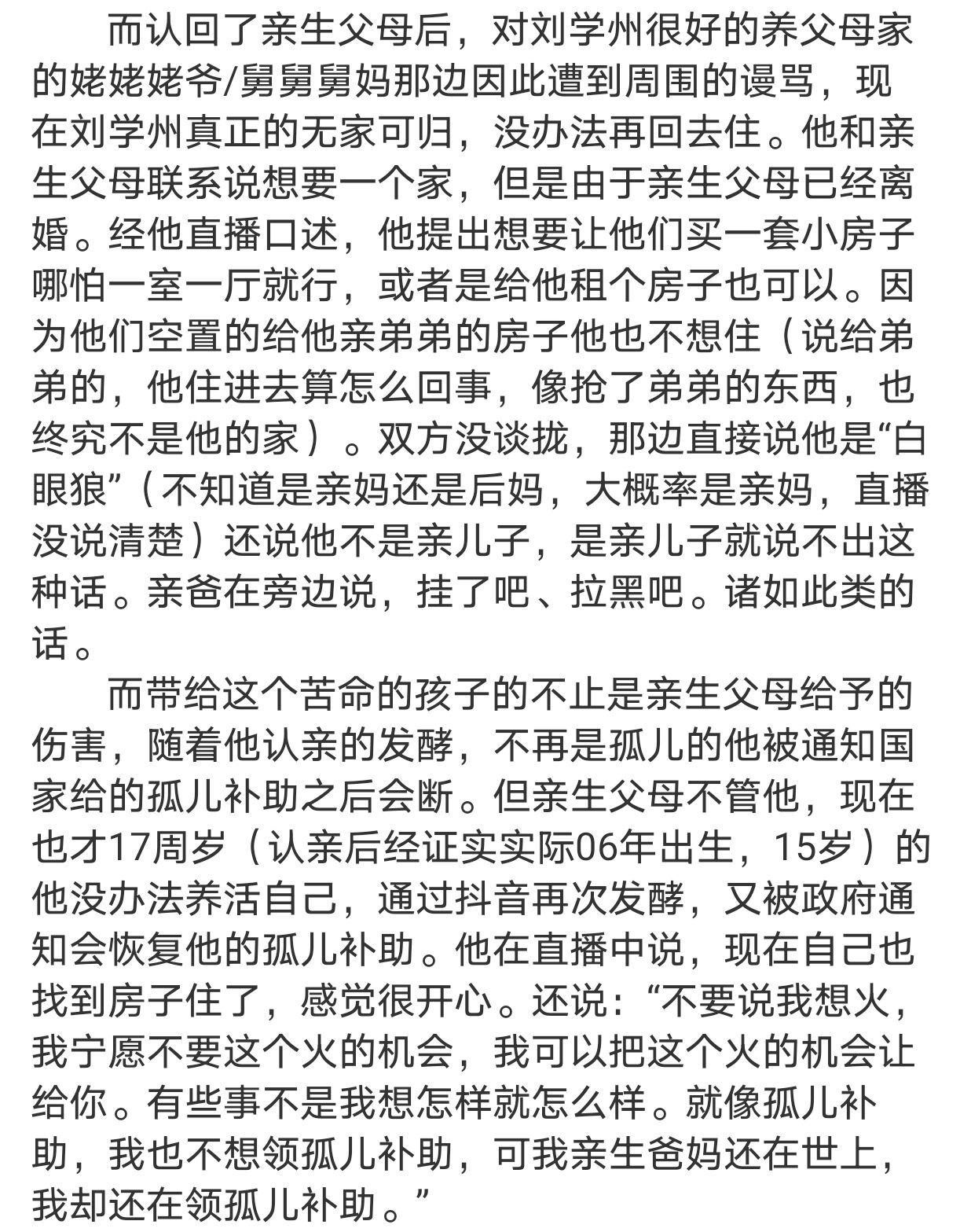 而且他也一直認為劉學州如今養父母的家庭環境要比自己好得多,現如今他已經不願再繼續關注此事了。
