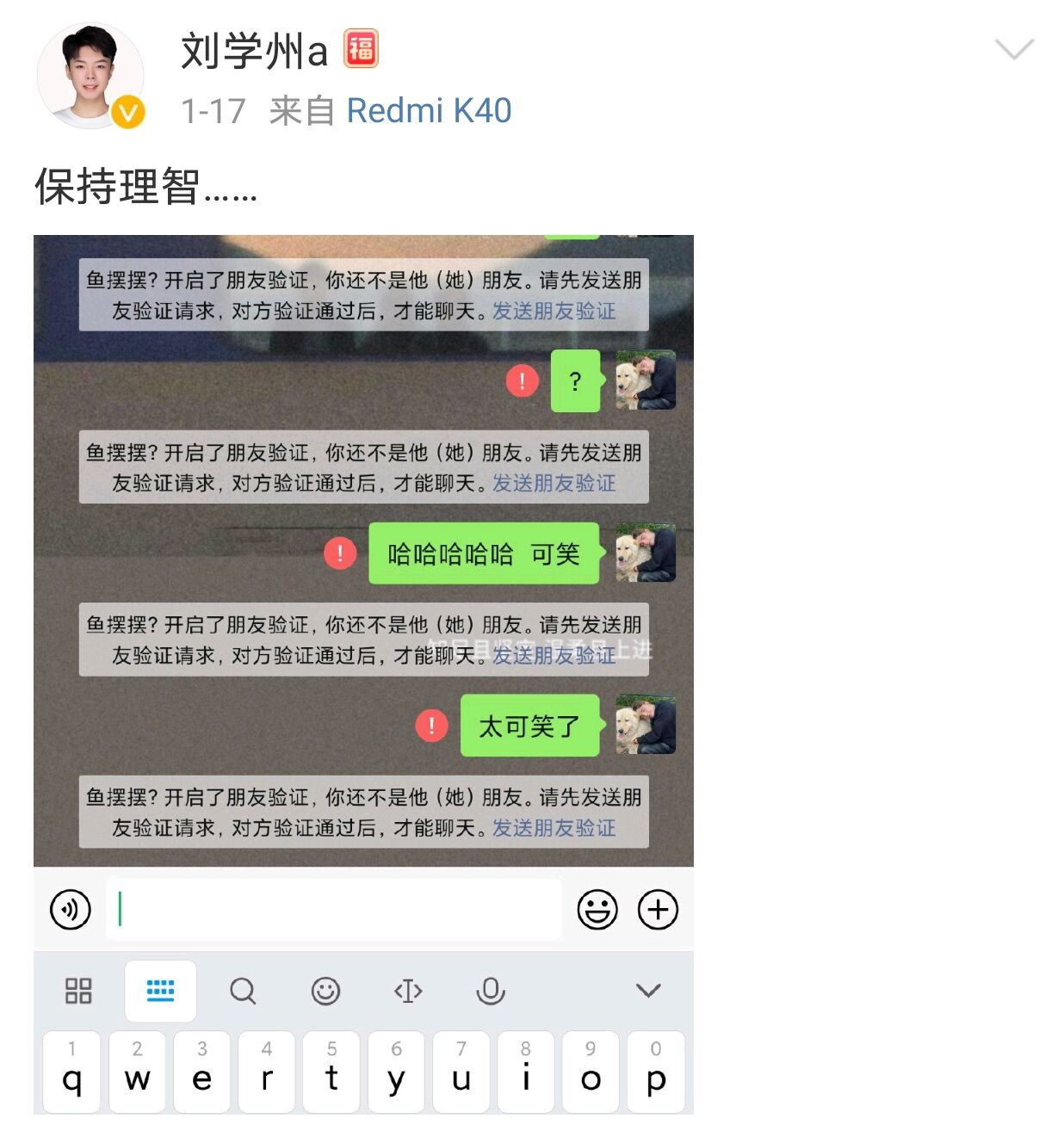 就在前天的時候,劉學州在自己的微博上發出了一張截圖,圖中顯示他的微信已經被自己的生母拉黑,無法再和生母對話了。