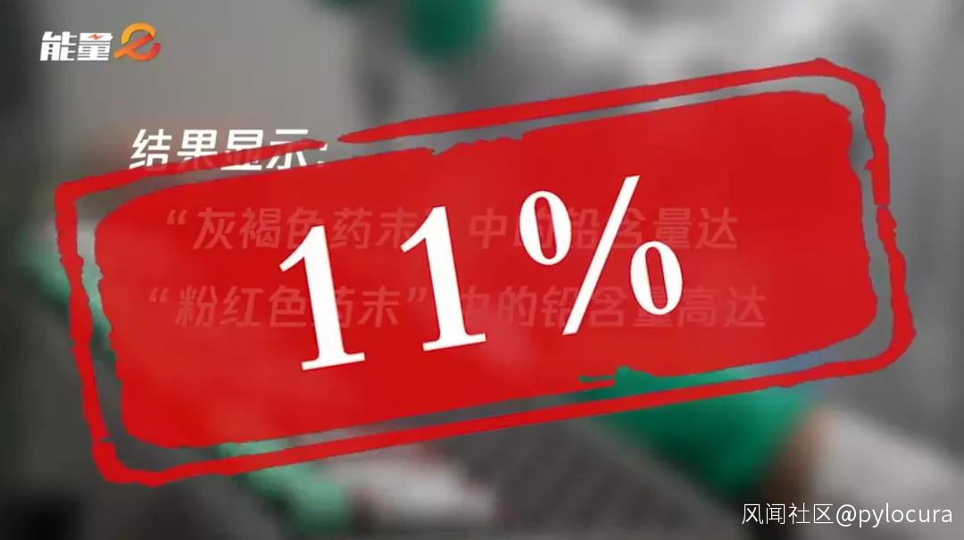 在經第三方檢測機構對兩種偏方進行檢測後,結果顯示灰褐色藥末中的鉛含量達5%,粉色藥末的鉛含量高達11%。