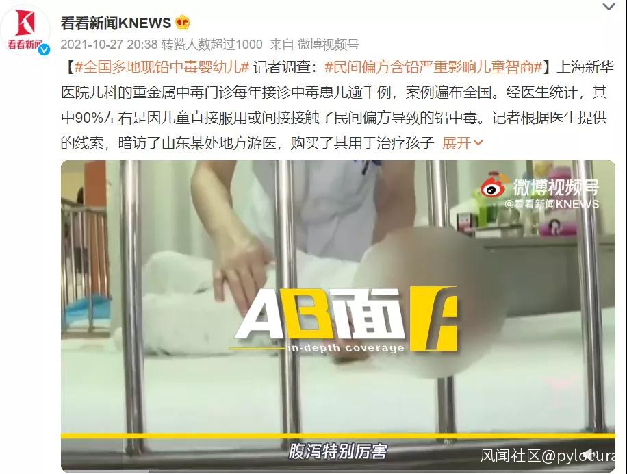 據2021年10月看看新聞報道,上海交大附屬新華醫院兒科重金屬門診每年接診逾千例鉛中毒患兒。