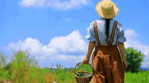 這一切似油畫場景的中心,都圍繞着這個戴着草帽的女孩展開。