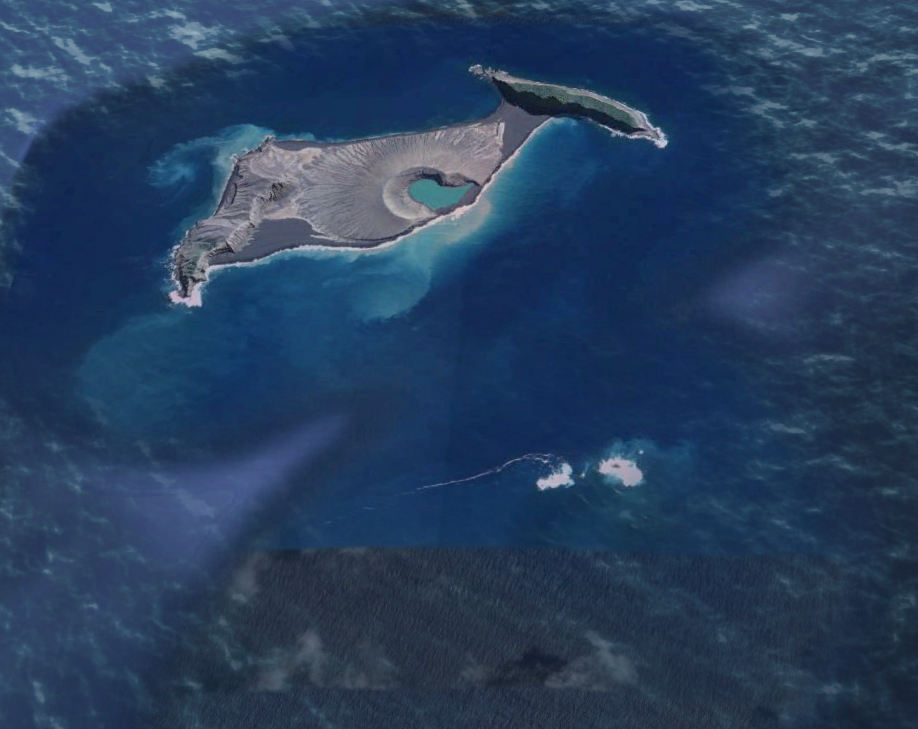 説回湯加火山爆發來。正因為它的地理位置,所以實際上科學家們對這裏火山爆發並不意外,這裏的火山,並不是會不會爆發的問題,而是何時爆發的問題。前些年科學家們對此地的海底地形進行了研究,發現這裏密佈着大大小小的火山口,這些火山口在過去幾十年中就非常活躍——2009年和2014年都曾經劇烈爆發過,其中2014年的爆發還形成了一個新的火山島,將兩座原本就存在的小島連在了一起,形成了一個長約5千米的聯合島。這個島嶼就是我們在前文説到的,也是新聞中大肆報道的那個被火山爆發掀飛的島嶼。